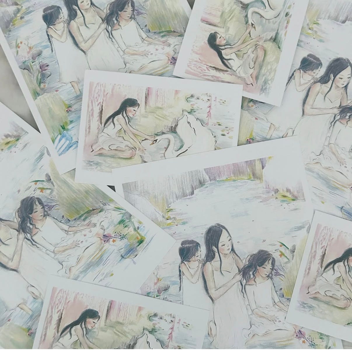 UG: Much of my work is inspired by nostalgia, especially memories of my childhood, and being a ballet dancer for 12 plus years. I’m drawn to creating dreamy pieces that explore themes of femininity and girlhood. When I draw, I hope my art can evoke these emotions, not just for me, but for anyone who sees it. I’m also inspired by dreamy, almost fantastical imagery. Some of my biggest influences include The Tale Of The Princess Kaguya by Studio Ghibli, The Complete Book of Fairies by Cicely Mary Barker, the work of Edgar Degas, and Aya Takano.